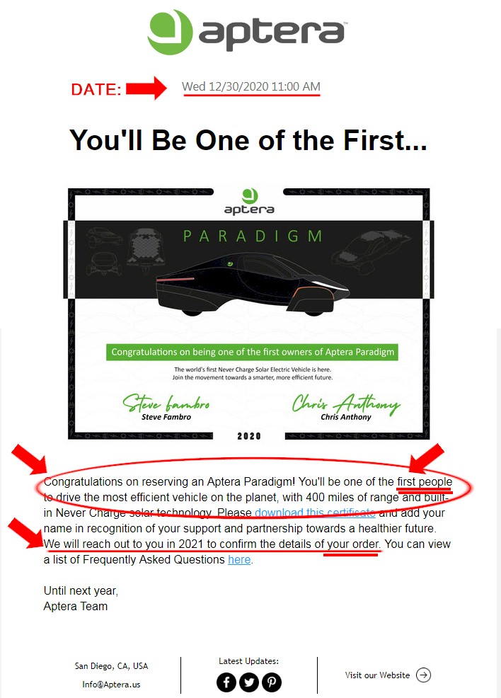 I am an Aptera Ambassador and Paradigm Launch Edition deposit