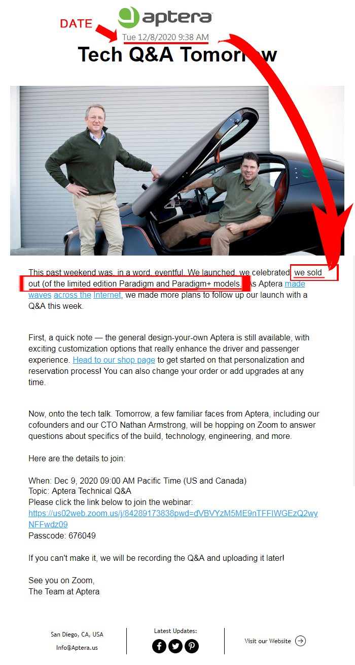 I ordered an Aptera December 04, 2020 around 4:00? ....the Aptera